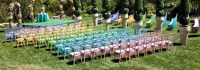 - What if I want to use the chairs during the ceremony and my reception? During the ceremony, earlier in the day, the chairs are setup in what is called theater style like this picture: